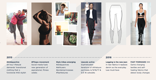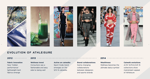 O Activewear está além dos treinos e o crescimento do Atlheisure deve continuar nas próximas temporadas com um efeito imediato na indústria têxtil: a necessidade de produtos cada vez mais tecnológicos. O WGSN elaborou uma linha do tempo que sugere a aproximação desta tendência na rotina de todos os públicos: