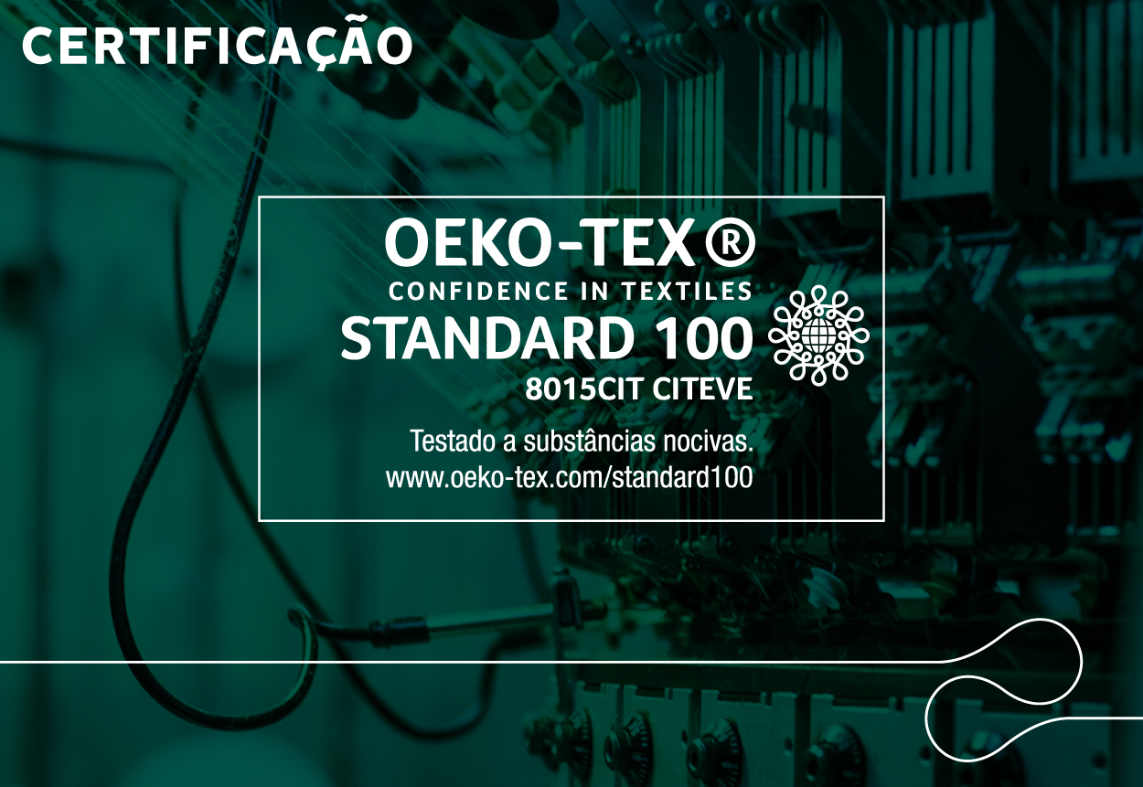 A ausência de químicos nocivos é reafirmada também com a certificação OEKO-TEX, comprovando que todos os nossos artigos com fibras de algodão, viscose, poliéster e poliamida (com ou sem elastano) obedecem a todos os requisitos relacionados à ecologia humana, revisados anualmente. Com todas estas ações, pretendemos contribuir cada vez mais com a evolução sustentável e consciente da indústria têxtil, assim também com o bem-estar de todos aqueles que nos cercam em todas as nossas relações internas e externas. Compromisso com a saúde e o bem-estar é compromisso com o futuro.