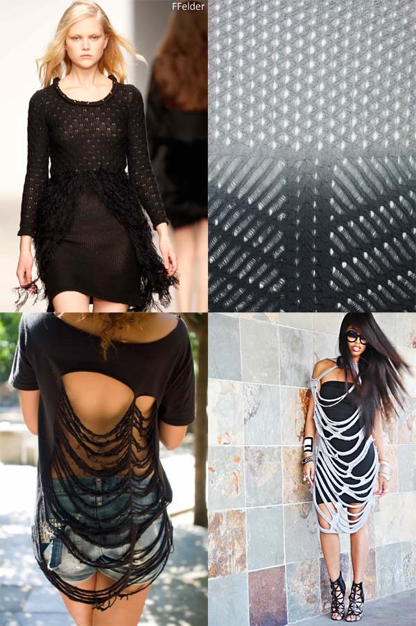 Há algum tempo, quando a moda pegou o punk, o grunge e o militarismo como fortes fontes de inspiração, muito se viu por aí peças rasgadas, puídas, furadas e desfiadas. E não é que tal tendência “desleixada” de tecidos volta à moda? Só que dessa vez ela não representa mais literalmente os estilos citados acima, podendo fazer parte de peças coringas sem receber rótulos de tribos urbanas.