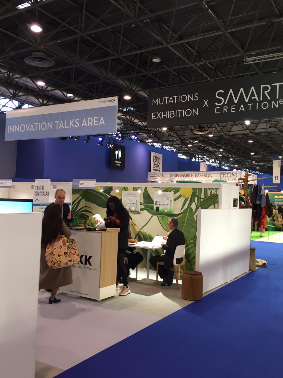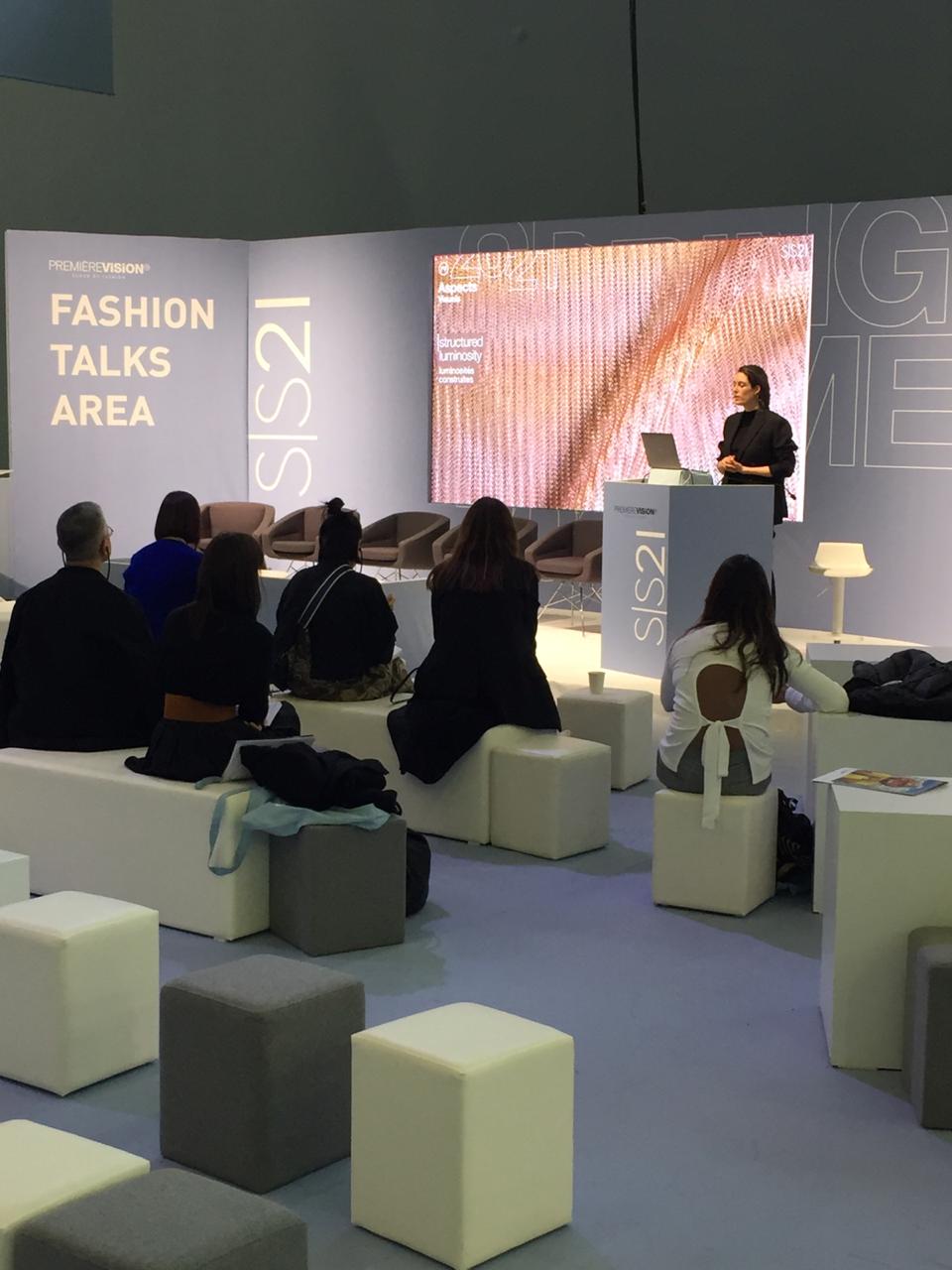 Além do espaço de exposição de produtos, a Première Vision também organiza fóruns e conferências. Caroline Molleri (gerente de desenvolvimento de produto) e Douglas Florêncio (estilista) visitaram o espaço nos dias 11 e 12 de fevereiro e constataram um assunto em comum em todos os segmentos: sustentabilidade. Nas palavras da Carol: “Muitos expositores de fios e tecidos que vimos em outros Halls também estavam aqui nesse segmento. Percebemos que esta feira não é mais sobre tendências de moda, mas sim sobre como transformar seu produto da forma mais sustentável e consciente possível. Aqui tudo é sobre preocupação e educação sustentável.” Este é o principal caminho para a evolução da indústria da moda.