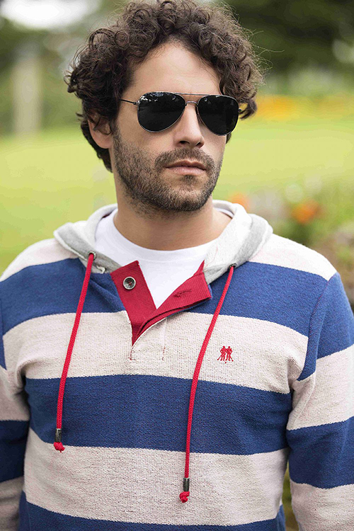 Cliente RVB Polo Wear utilizou nosso Moletom FROST, com fio de algodão tinto, listrado rapport, com o lado avesso foi usado para fora.