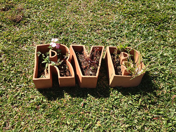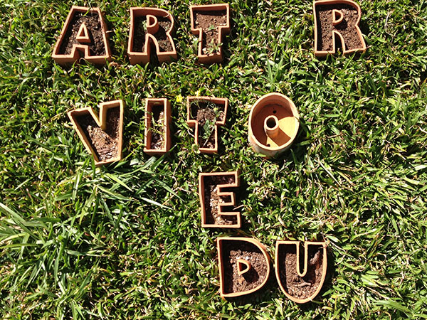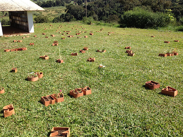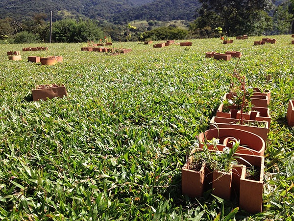 A obra interage com o espectador, que é convidado a compor palavras usando mais de 1500 vasos de cerâmica em forma de letras, disponíveis espalhados pelo jardim e também no ateliê, onde o espectador pode selecionar e semear as plantas de sua escolha.
