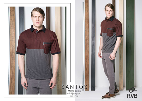 De apelo esportivo e casual, a camisa polo é item essencial no guarda-roupa masculino e, apesar de sua modelagem clássica, aparece renovada a cada estação. Para o Inverno 2018, jacquards (FRED, LAURENTINO, PAULO, SALVADOR, SANTIAGO), listrados e mix de artigos atualizam a peça.