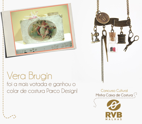Charmosa e delicada, assim é a caixa de costura da Vera Brugin. Não é à toa que ela recebeu o maior número de votos e foi a vencedora do Concurso Cultural Minha Caixa de Costura. Parabéns! Fique de olho no seu e-mail que vamos entrar em contato em breve para pegar seus dados e enviar seu lindo colar de costura da Parco Design.