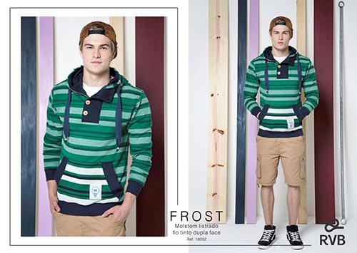 LOOKBOOK RVB INV 18 11 LOOKBOOK RVB INV 18 13Itens básicos como polos e t-shirts ganham mais vida com o colorido dos listrados, que também incrementam de maneira contemporânea peças mais quentes como casacos e moletons. Consulte o nosso representante em sua região e conheça a coleção RVB Inverno 18.