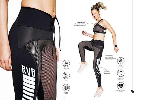 A malha dupla em poliamida 6.6 VITA da RVB tem elastano e pode tanto ser utilizada para peças de alfaiataria com o artigo VITATAILOR quanto em peças de compressão e que modelam o corpo com o artigo VITAINSIDE. Ambos possuem tecnologia DRY, com boa transpiração e secagem rápida, com adesivos que identificam o lado do tecido que contém a tecnologia para facilitar o corte das peças.