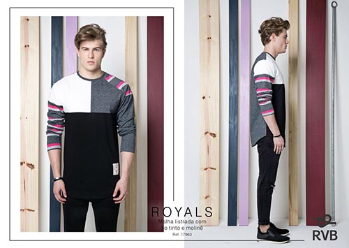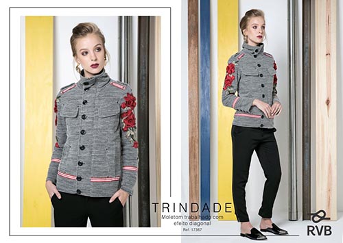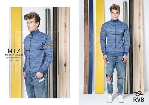 O inverno 2018 da RVB foi pensado de acordo com as principais tendências internacionais das ruas e das passarelas e, ao adaptar os modismos globais ao nosso mercado, chegamos a quatro Macro Trends que são o carro chefe para o próximo inverno: Patchwork de Listras, Sofisticação Utilitária, Influência Esportiva e Moletons.