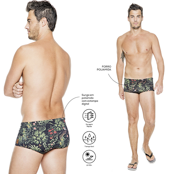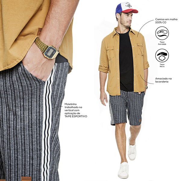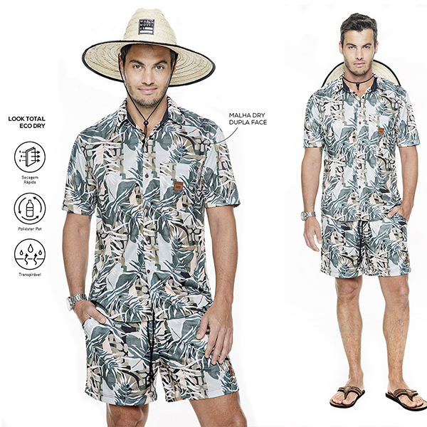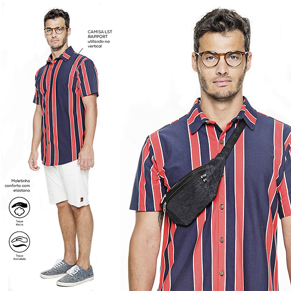 Bottoms com listra lateral única, conjuntos de bermuda e camiseta, camisas de manga curta com estampas e listras grossas e bermudas, shorts e sungas com motivos tropicais, além de camisas polo com mini estampinhas e texturas de jacquard, são o ponto alto da moda masculina para o verão brasileiro. Uma mistura do estilo esportivo, onipresente no menswear, com as cores e estampas vibrantes do nosso tropicalismo.