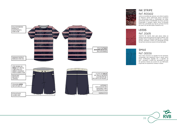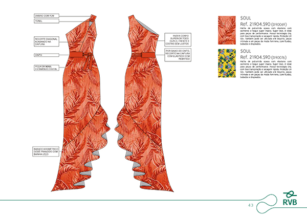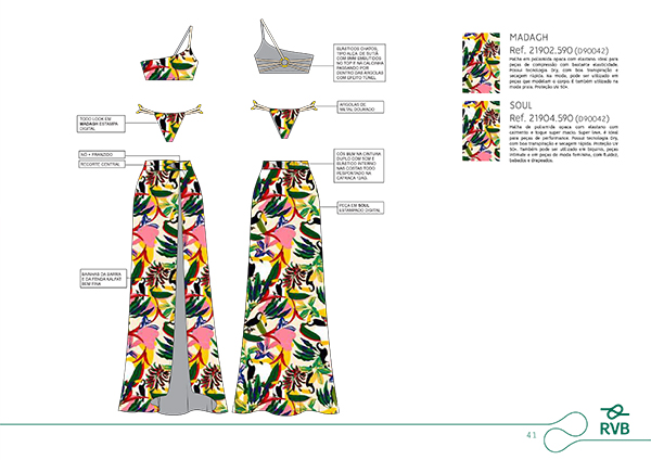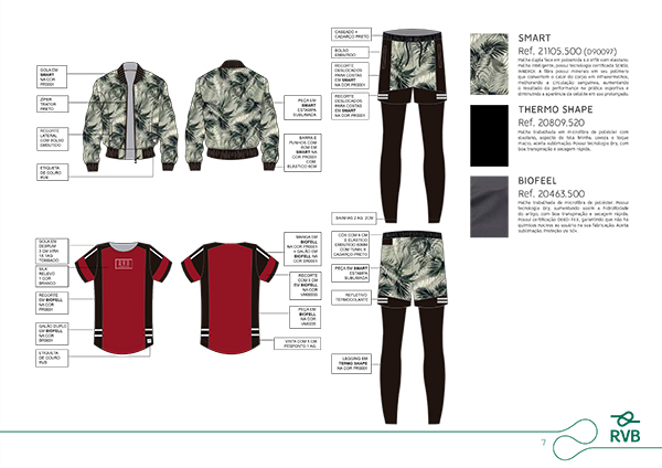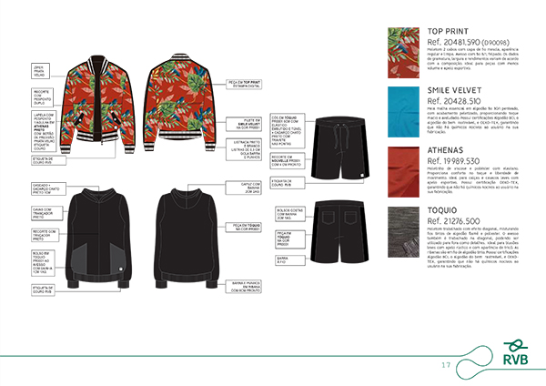 Roupas bonitas e funcionais desenvolvidas com os artigos RVB tornam-se realidade com a expertise dos profissionais das áreas de estilo, modelagem e costura, por isso disponibilizamos várias ferramentas para facilitar a compreensão dos atributos dos nossos artigos, do caimento às texturas e tendências relacionadas. O Workbook RVB compreende informações interessantes sobre os artigos RVB de cada coleção, incluindo os diferenciais de cada artigo e desenhos técnicos das peças do nosso lookbook, um material valioso para inspirar a aplicação dos produtos RVB e o design diferenciado, alinhado às principais tendências da temporada.
